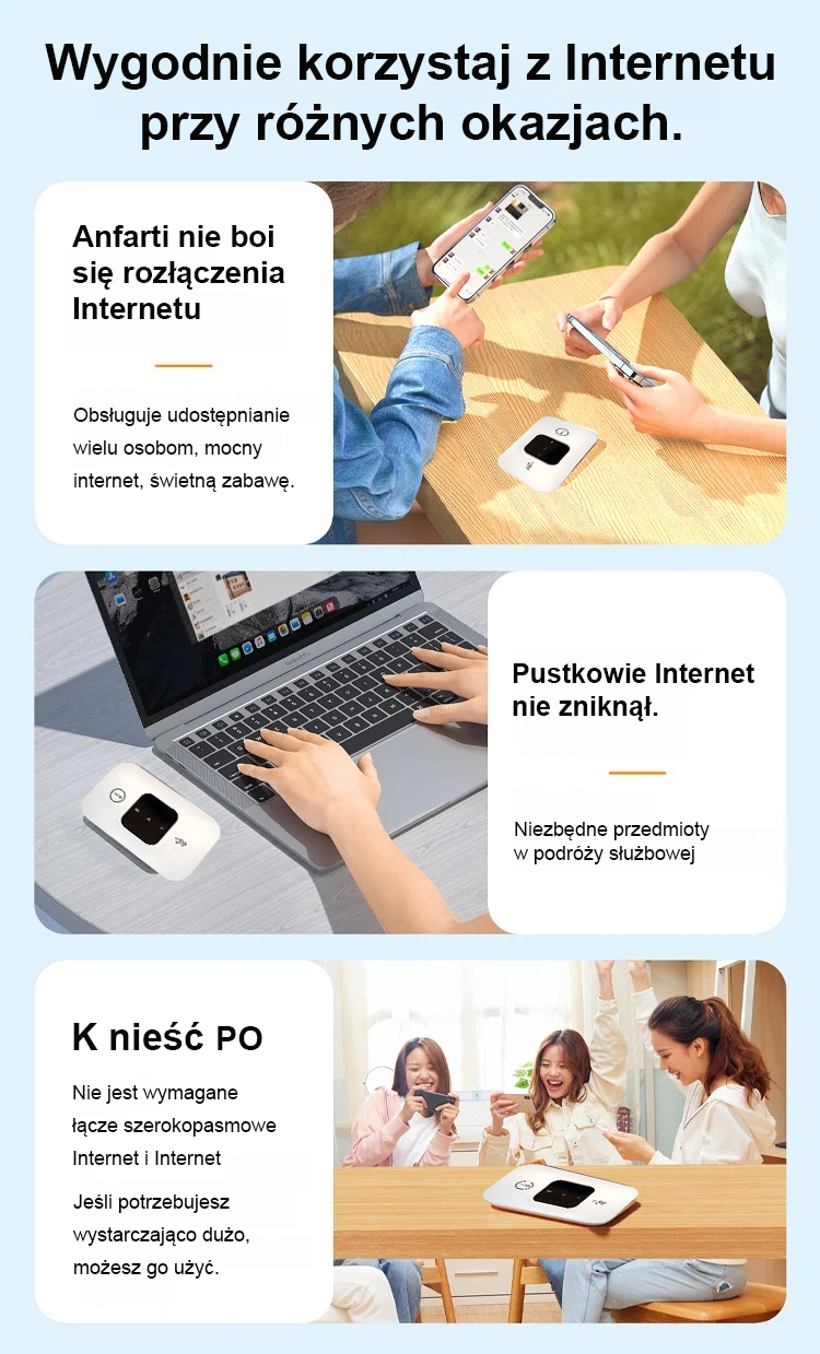 ✅Zapewnia zasięg na całym świecie i pozwala na podłączenie do 12 urządzeń jednocześnie. ✅Bez umowy, bez miesięcznych opłat, bez kaucji. ✅Doskonała wydajność – prędkość do 10 razy wyższa niż w zwykłym WiFi.
